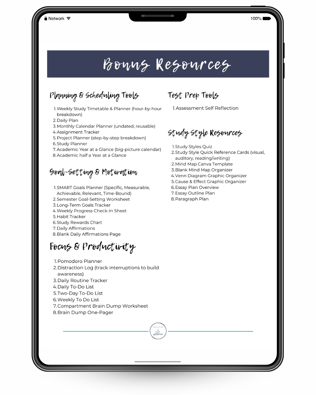 This isn’t just another planner. It teaches systems and habits, not just paper tracking. It’s about confidence, independence, and real results. I teach you the systems for every student to accommodate their unique learning style, and provide extra resource tools for every student to discover which habits, routines, and systems best suit them for success.